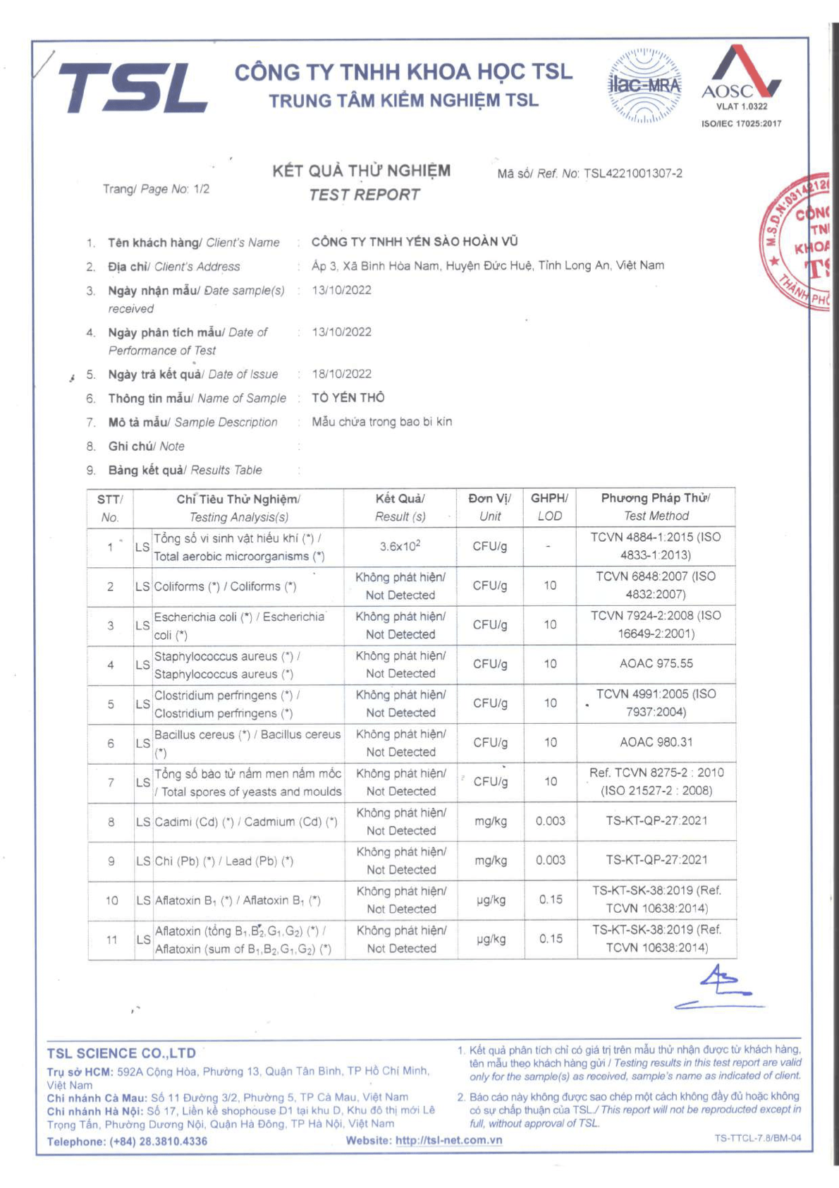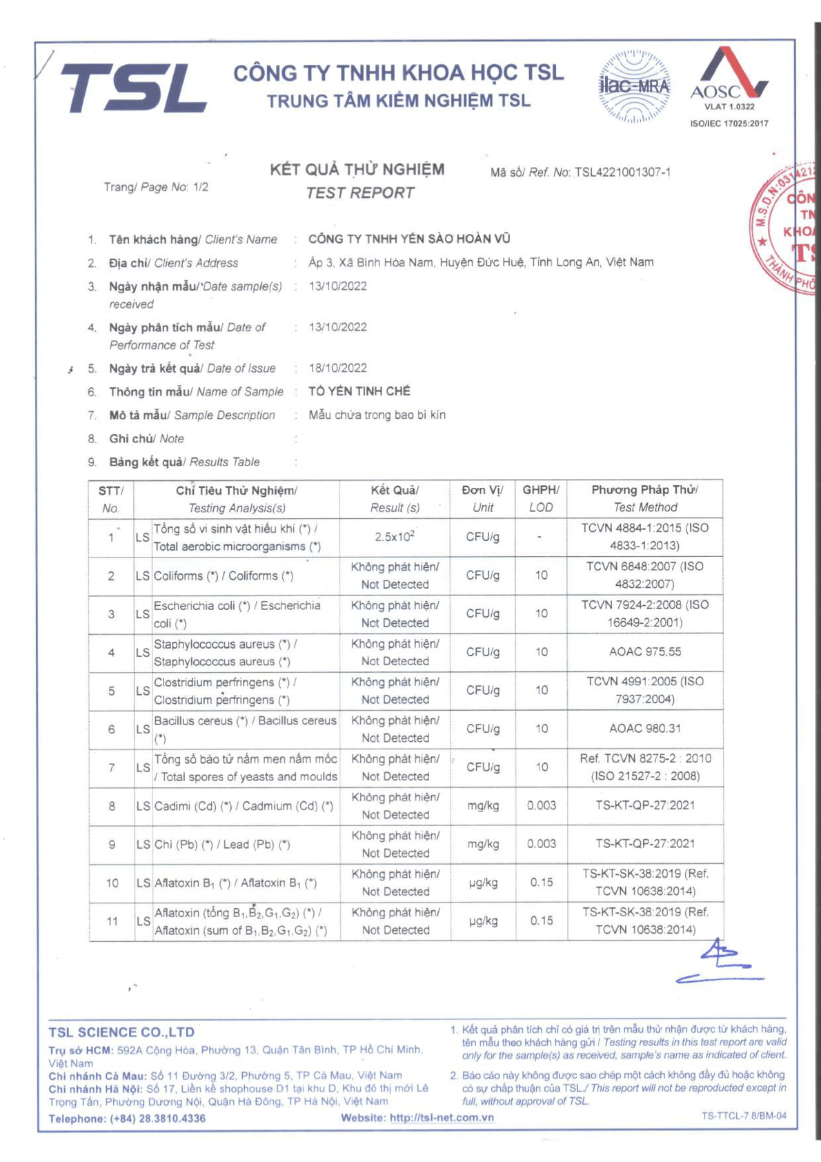 Hoàn Vũ Yến đã đạt nhiều chứng nhận về chất lượng, an toàn vệ sinh thực phẩm
